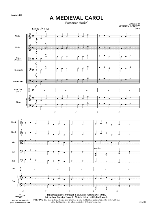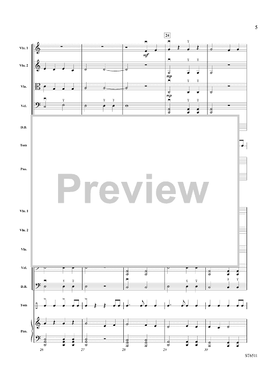 Expand the reach of your holiday program with this wonderful arrangement of the medieval carol Personet Hodie (“Let resound today” in Latin). Often relegated to choir, this version for strings and percussion showcases bold, powerful lines and a strong rhythmic backdrop. An excellent addition to any winter program. (2:15)