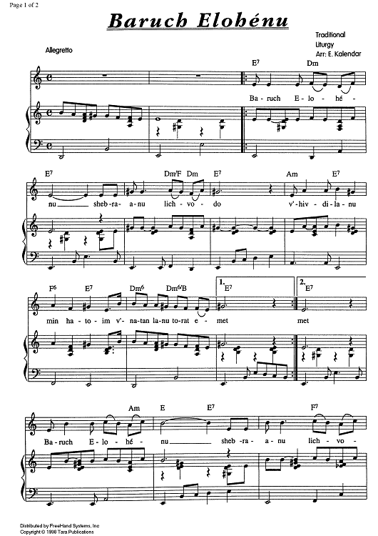Digital Sheet Music for Baruch Elohénu by , Edward Kalendar, Traditional scored for Voice/Piano; id:343845