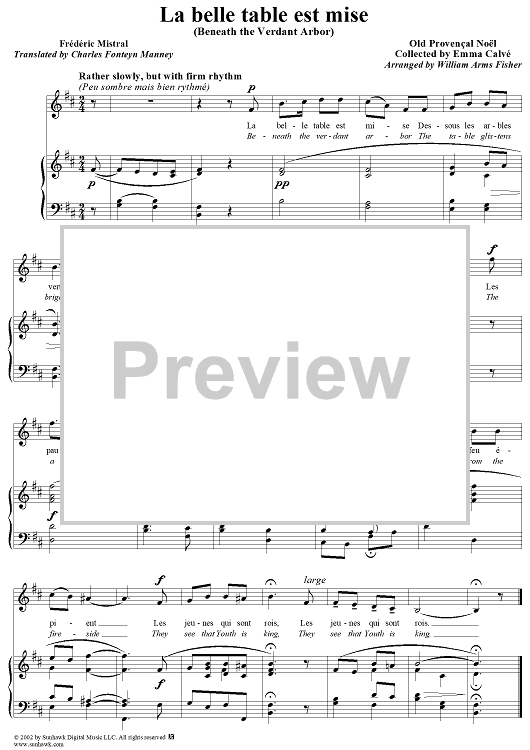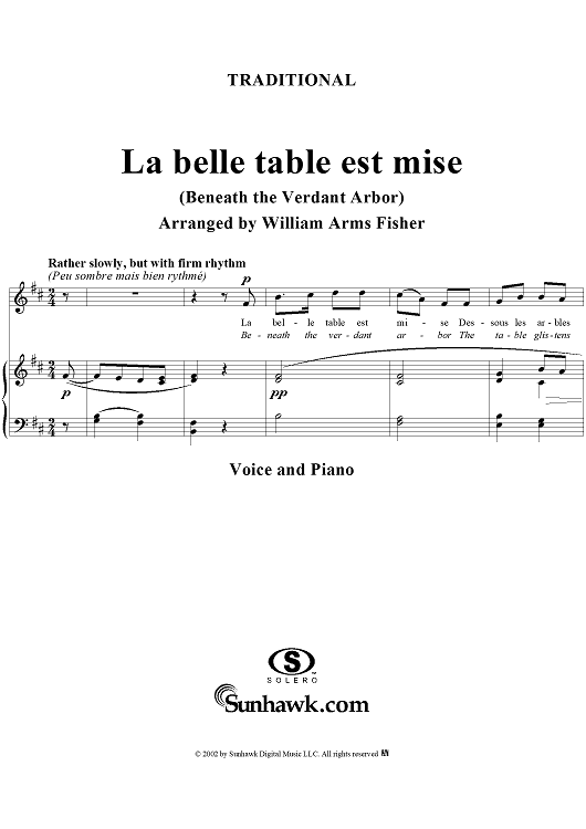 Digital Sheet Music for Beneath The Verdant Arbor (La Belle Table est Mise) by Frederic Mistral, Traditional scored for Voice/Piano; id:269437