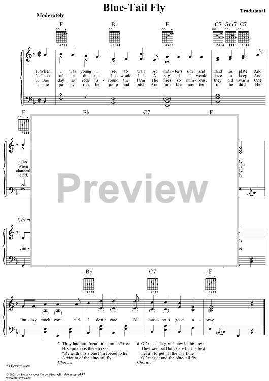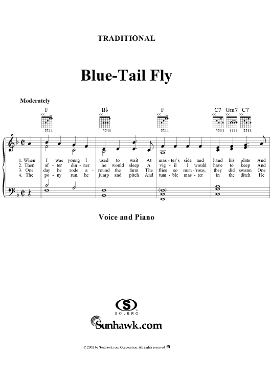 Digital Sheet Music for Blue-Tail Fly by Traditional scored for Piano/Vocal/Chords; id:289822