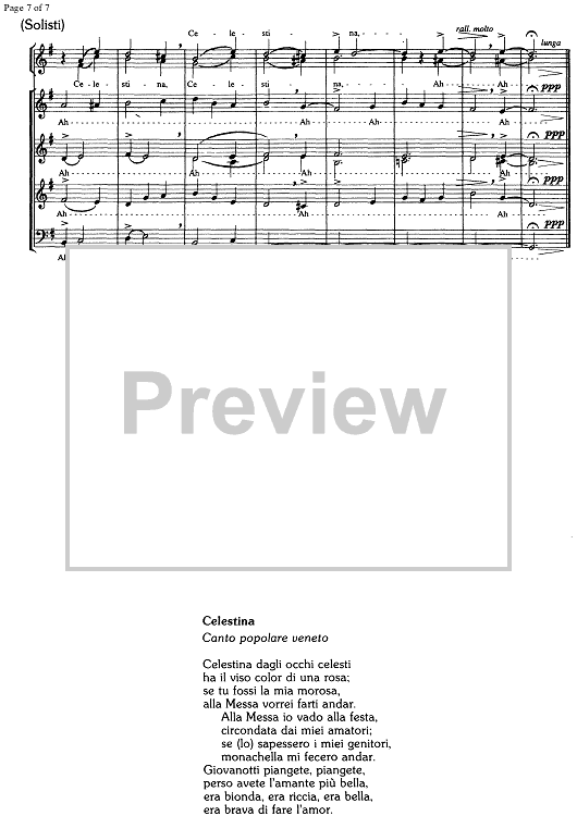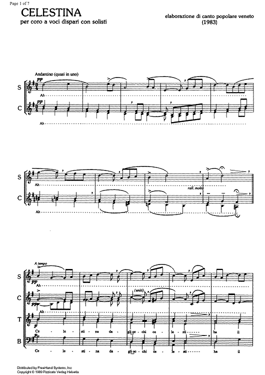 Digital Sheet Music for Celestina by , Albino Perosa, Traditional scored for SATB Choir; id:329856