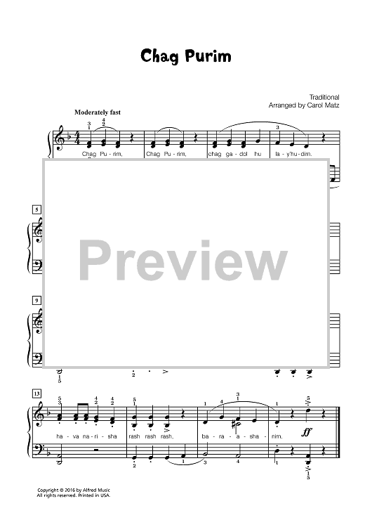 Digital Sheet Music for Chag Purim by Carol Matz, Traditional scored for Piano; id:461310