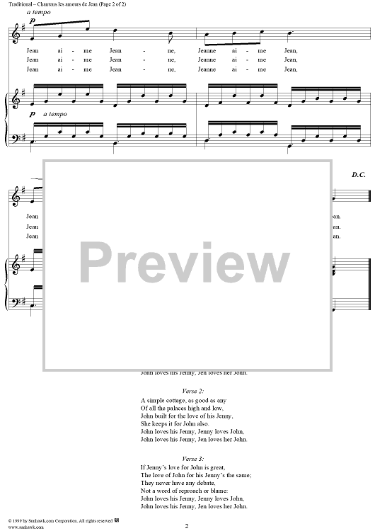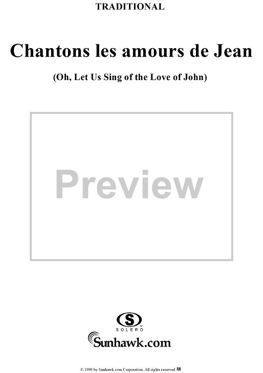 "Chantons les amours de Jean - (Oh, Let Us Sing of the Love of John)" Sheet Music by Traditional