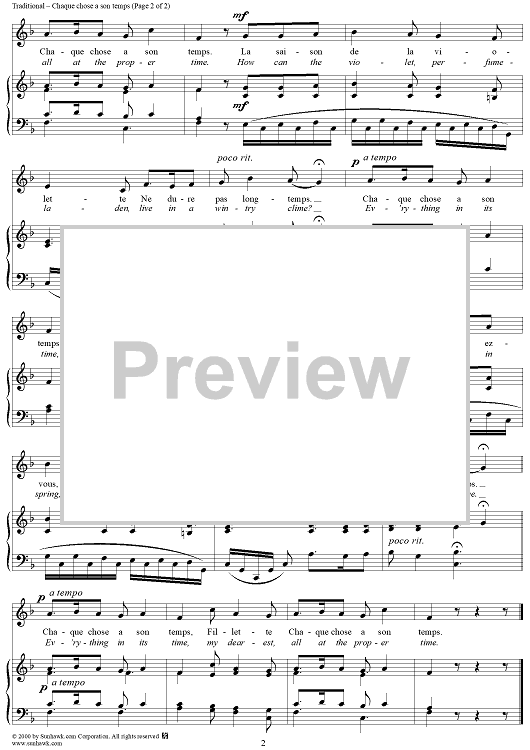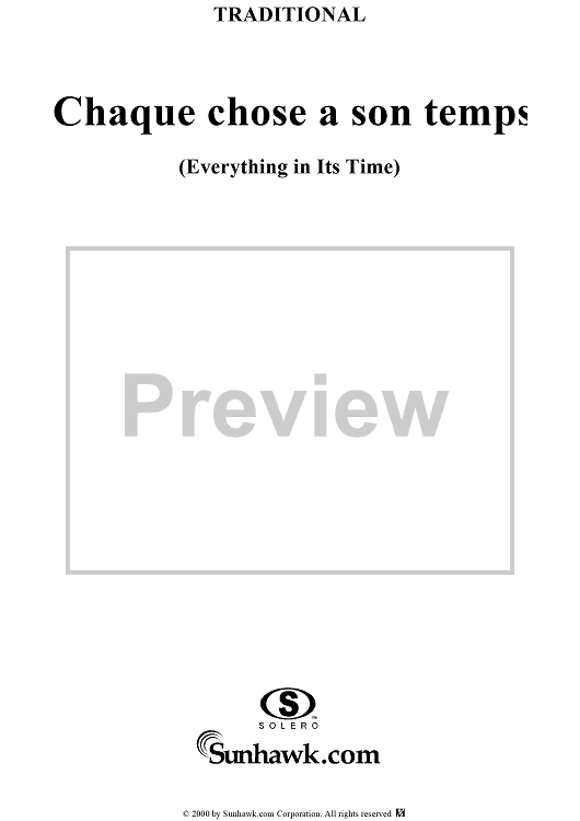 "Chaque chose a son temps - (Everything in its Time)" Sheet Music by Traditional