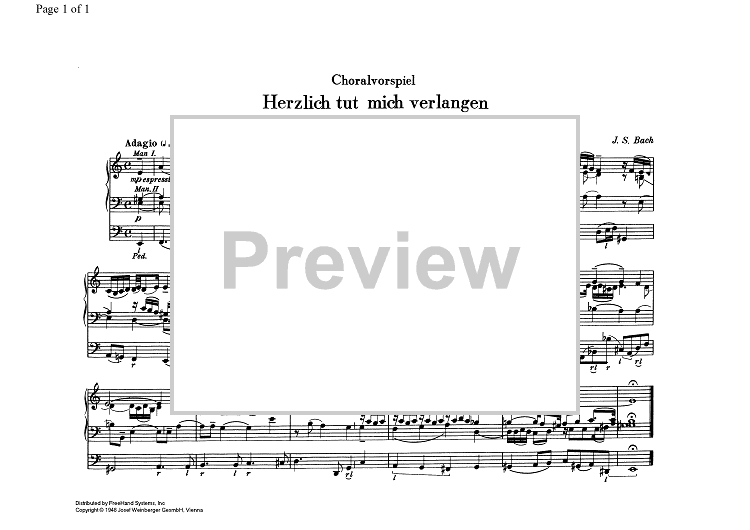 Digital Sheet Music for Choral prelude: Herzlich tut mich verlangen by Johann Sebastian Bach, Traditional scored for Organ Solo; id:338327