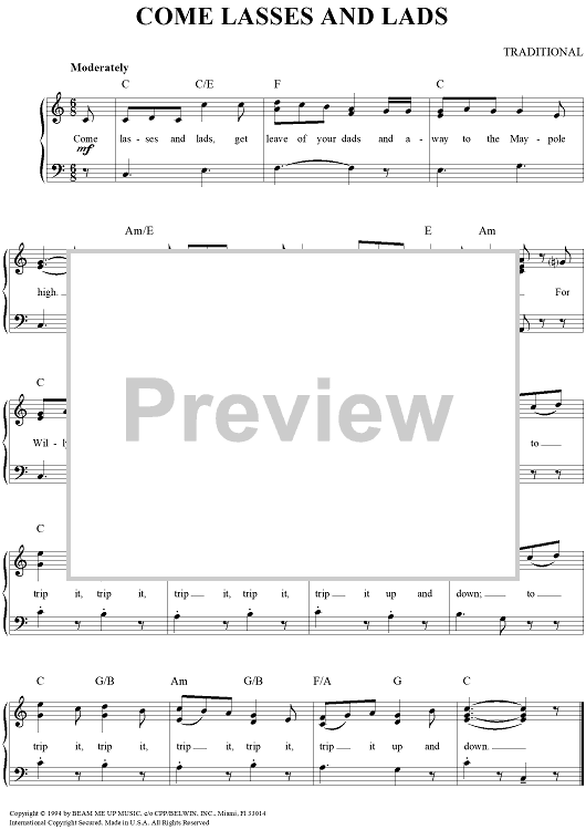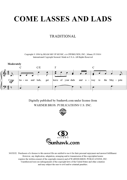 Digital Sheet Music for Come Lasses and Lads by Traditional scored for Piano/Vocal/Chords; id:260812