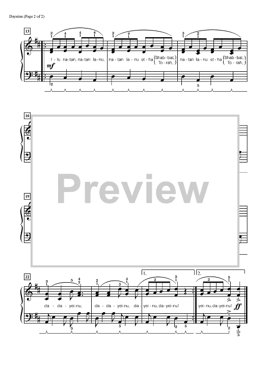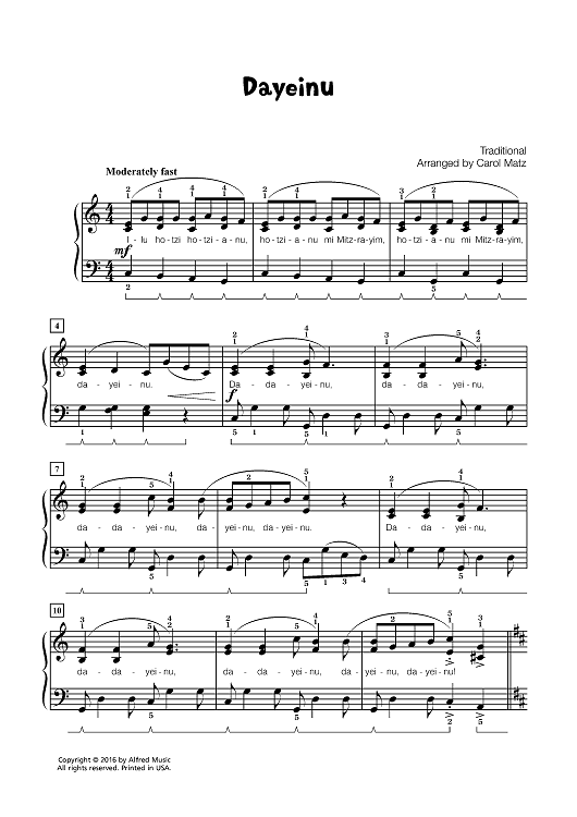 Digital Sheet Music for Dayeinu by Carol Matz, Traditional scored for Piano; id:461312