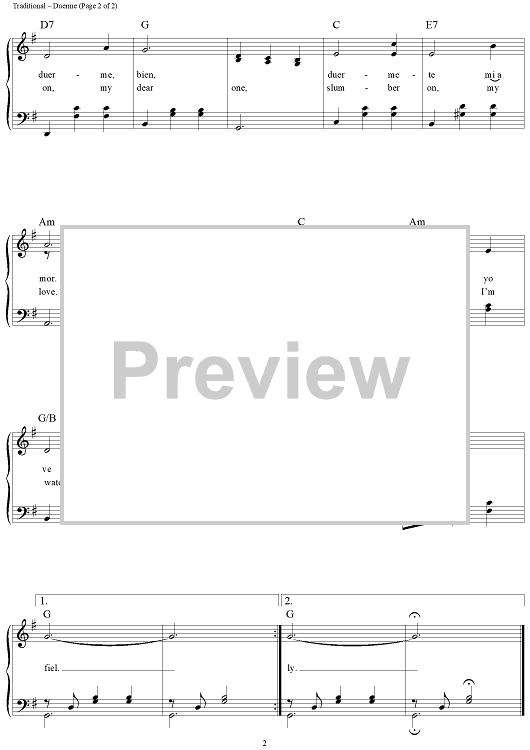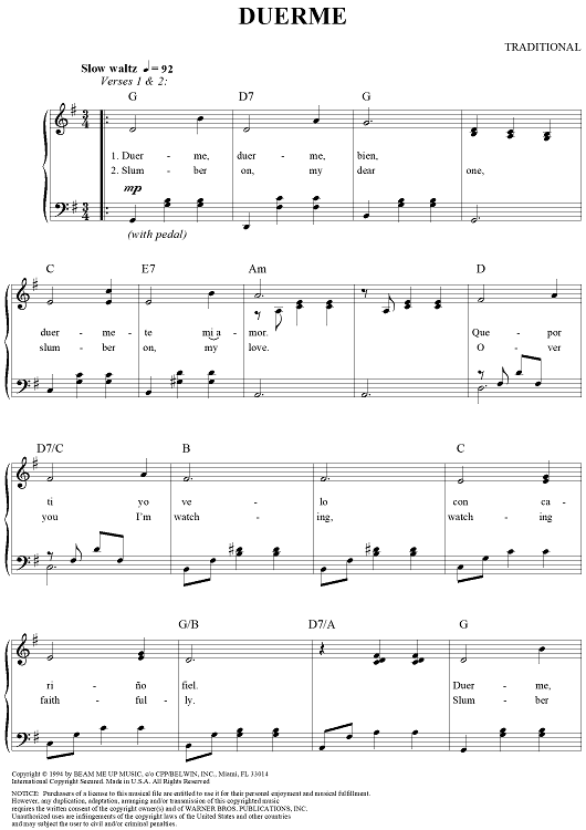 Digital Sheet Music for Duerme by Traditional scored for Piano/Vocal/Chords; id:259733