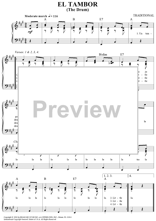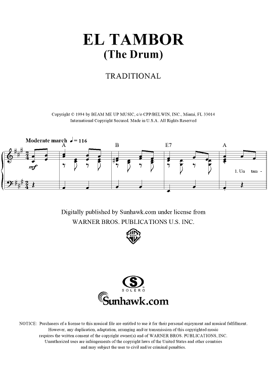 Digital Sheet Music for El Tambor by Traditional scored for Piano/Vocal/Chords; id:262067