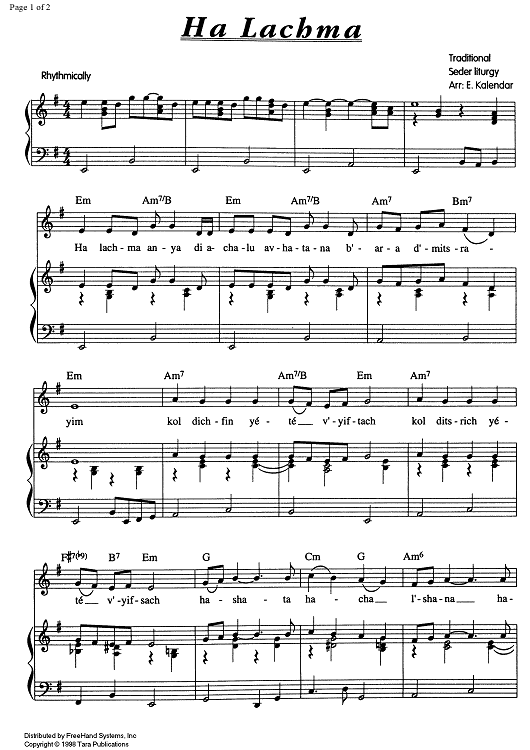 Digital Sheet Music for Ha Lachma by , Edward Kalendar, Traditional scored for Voice/Piano; id:343869