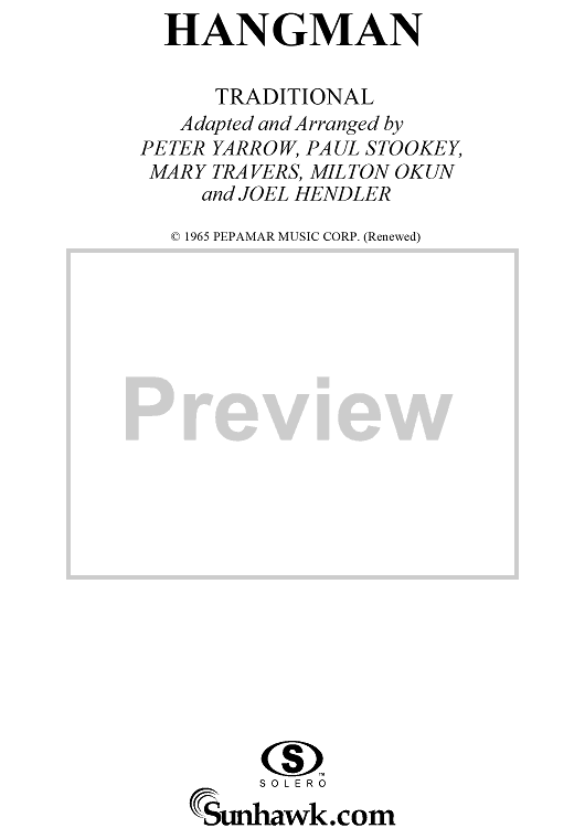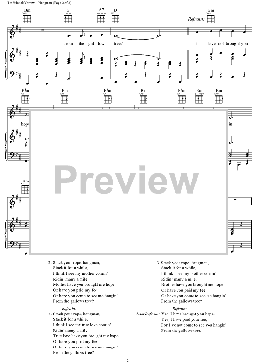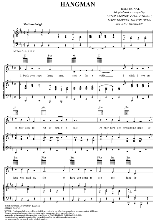 Digital Sheet Music for Hangman by Peter Yarrow, Peter, Paul and Mary, Traditional scored for Piano/Vocal/Chords; id:261131