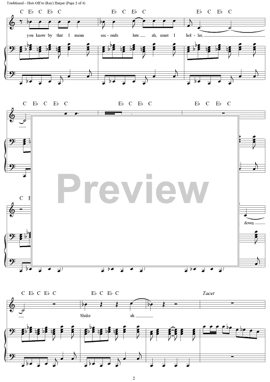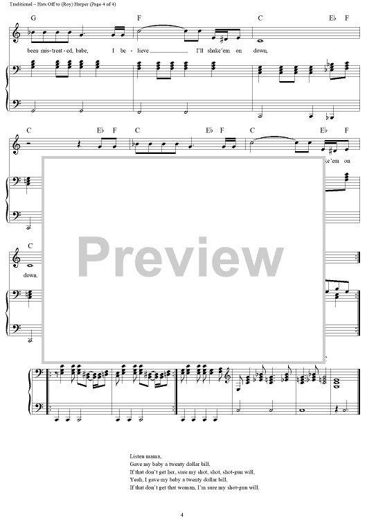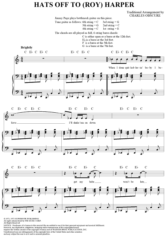 Digital Sheet Music for Hats Off to (Roy) Harper by Charles Obscure, Led Zeppelin, Traditional scored for Piano/Vocal/Chords; id:124343