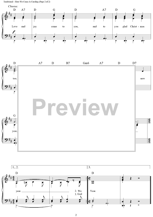 Digital Sheet Music for Here We Come A-Caroling - The Wassail Song by Traditional scored for Easy Piano/Vocal/Chords; id:430343