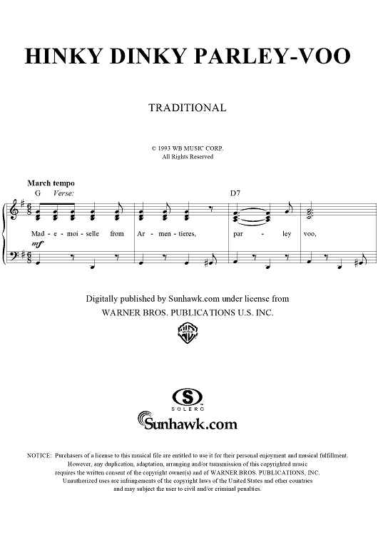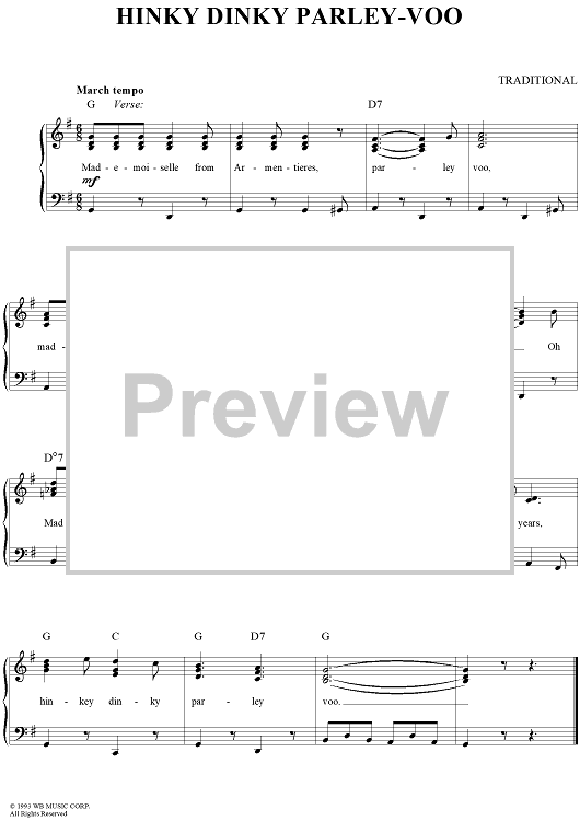 Digital Sheet Music for Hinky Dinky Parley-Voo by Traditional scored for Piano/Vocal/Chords; id:261277