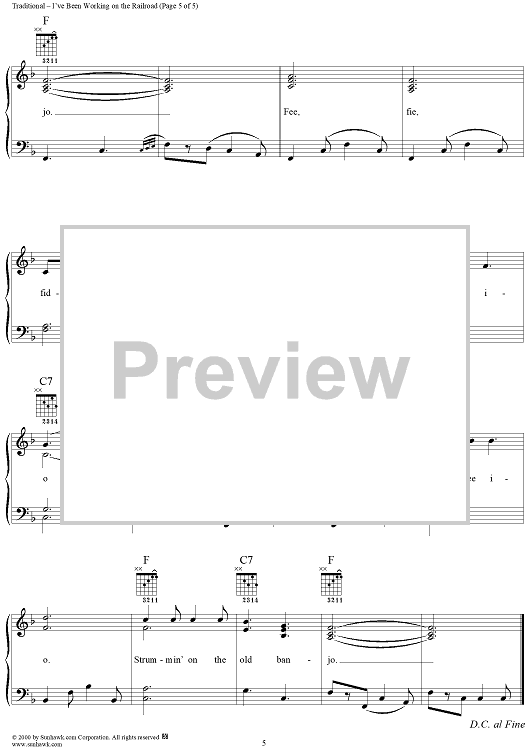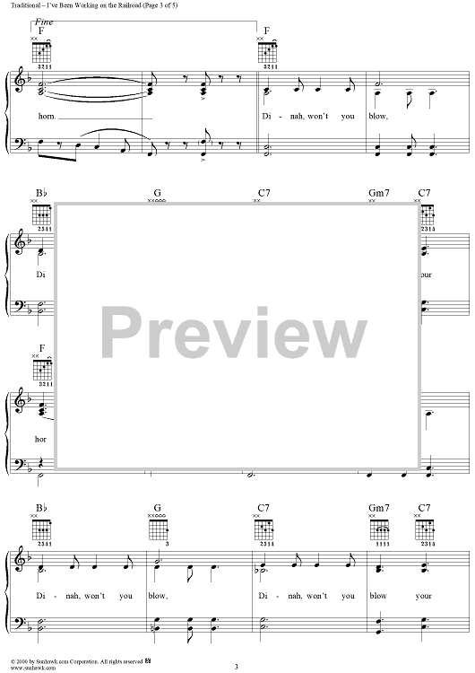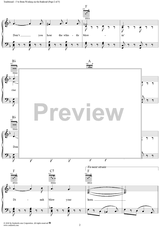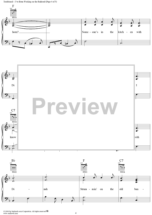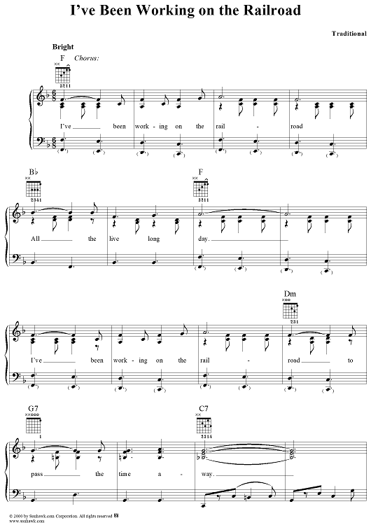 Digital Sheet Music for I've Been Working On The Railroad by Traditional scored for Piano/Vocal/Chords; id:262174