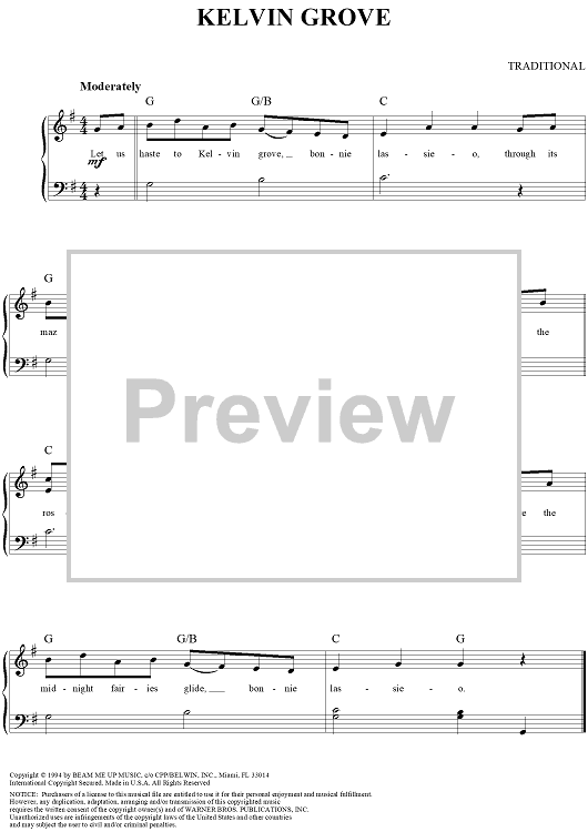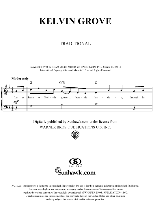 Digital Sheet Music for Kelvin Grove by Traditional scored for Piano/Vocal/Chords; id:260163