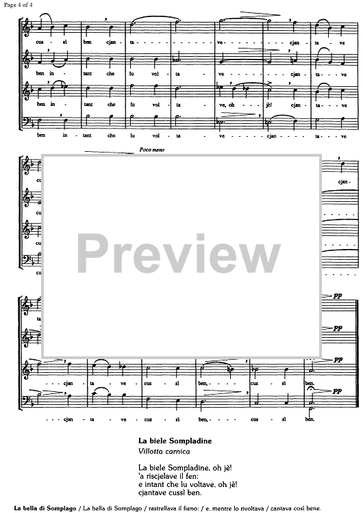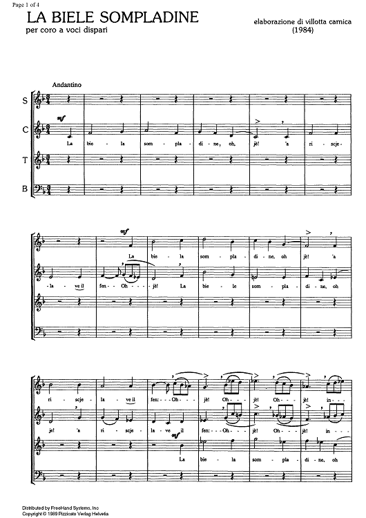 Digital Sheet Music for La biele sompladine by , Albino Perosa, Traditional scored for SATB Choir; id:331206