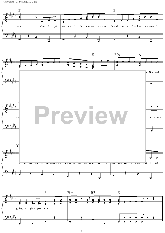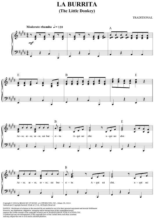Digital Sheet Music for La Burrita by Traditional scored for Piano/Vocal/Chords; id:260622