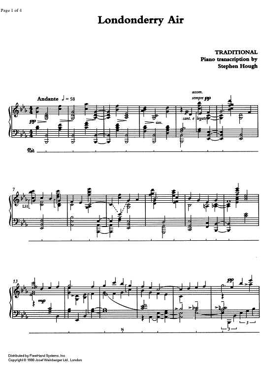 Digital Sheet Music for Londonderry Air by Traditional scored for Piano Solo; id:332587