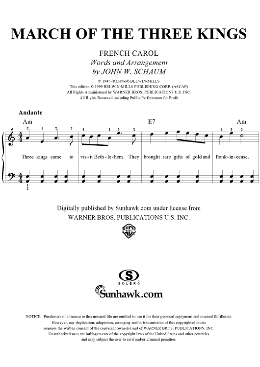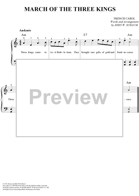 Digital Sheet Music for March Of The Three Kings by John W. Schaum, Traditional scored for Easy Piano/Vocal; id:241949