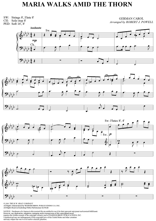 Digital Sheet Music for Maria Walks Amid the Thorn by Robert J. Powell, Traditional scored for Organ Solo; id:286981