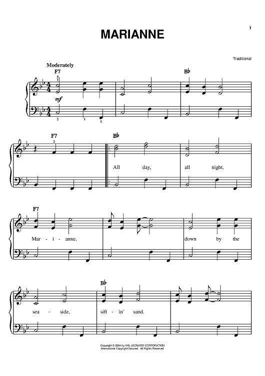 Digital Sheet Music for Marianne by Traditional scored for Easy Piano; id:373856