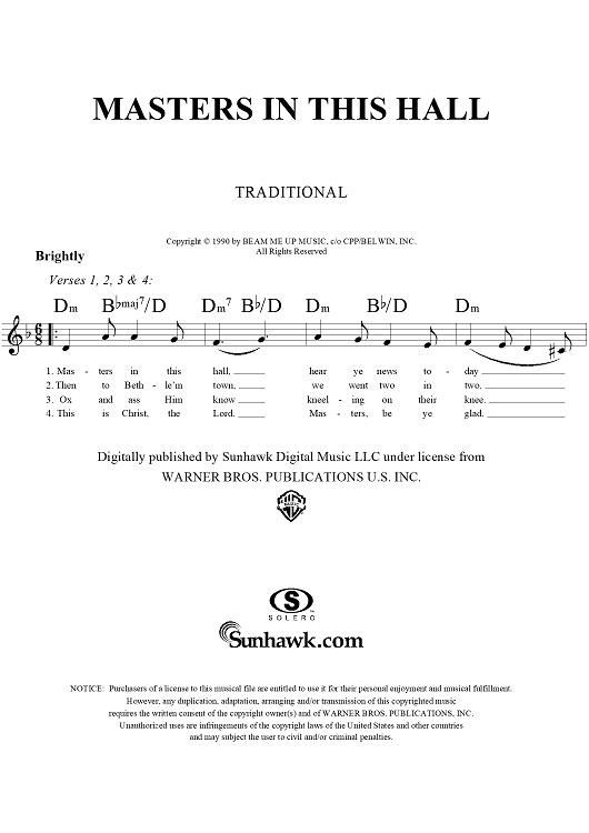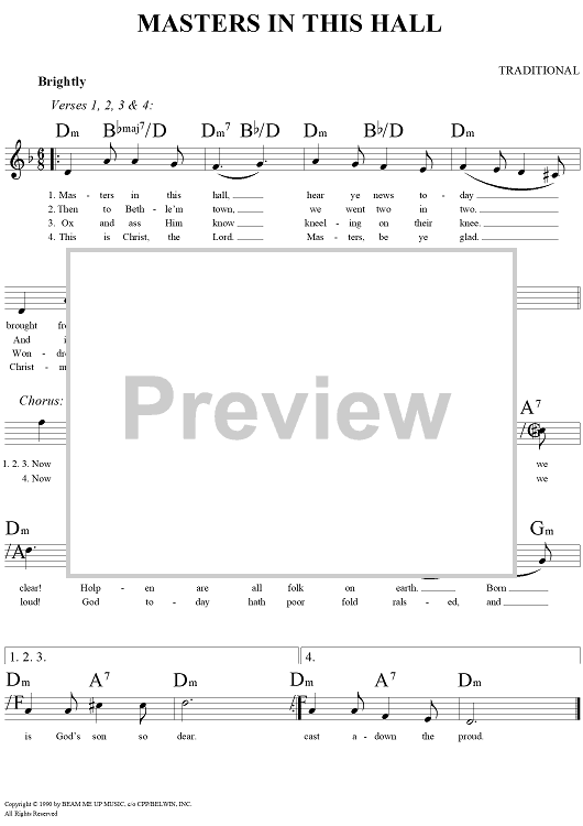 Digital Sheet Music for Masters In This Hall by Traditional scored for Lead Sheet; id:261425