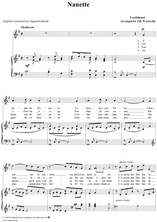 Digital Sheet Music for Nanette by J. B. Weckerlin, Traditional scored for Voice/Piano; id:261601