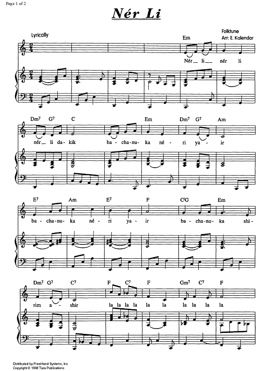 Digital Sheet Music for Nér Li by , Edward Kalendar, Traditional scored for Voice/Piano; id:343835