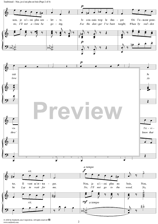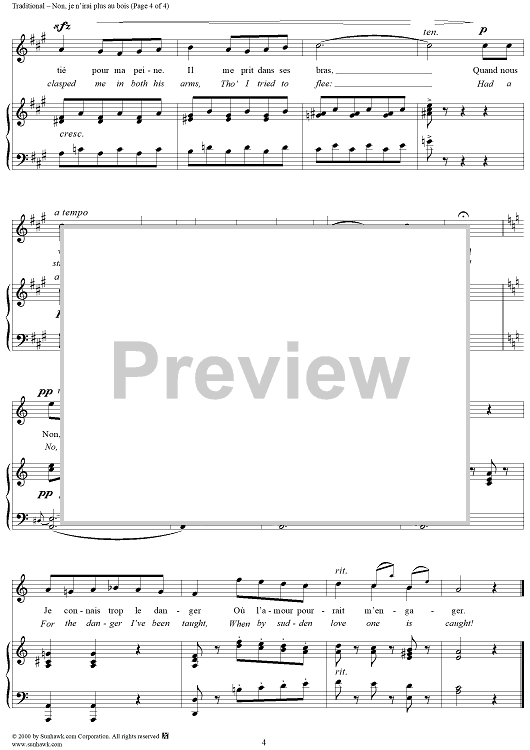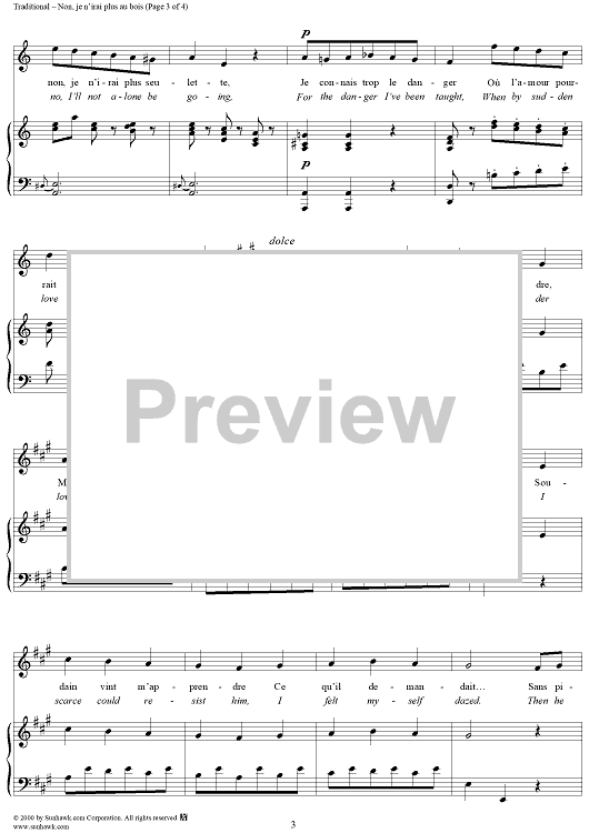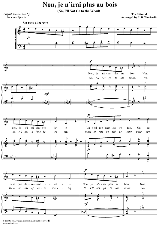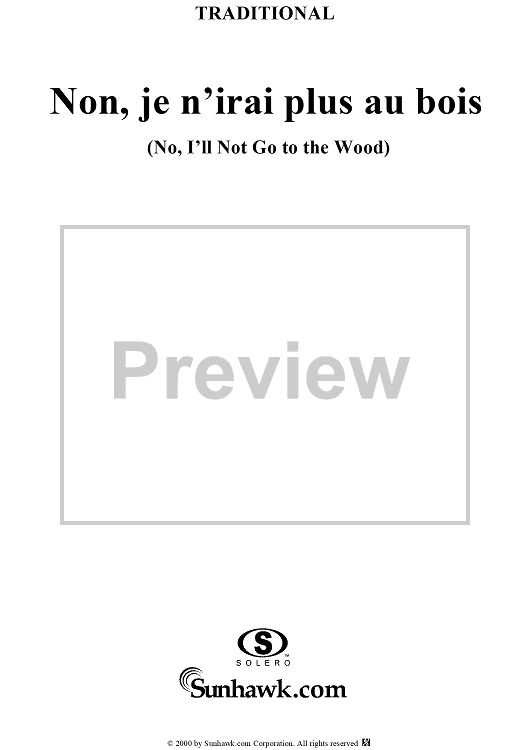 "Non, je n'irai plus au bois - (No, I'll Not Go to the Wood)" Sheet Music by Traditional