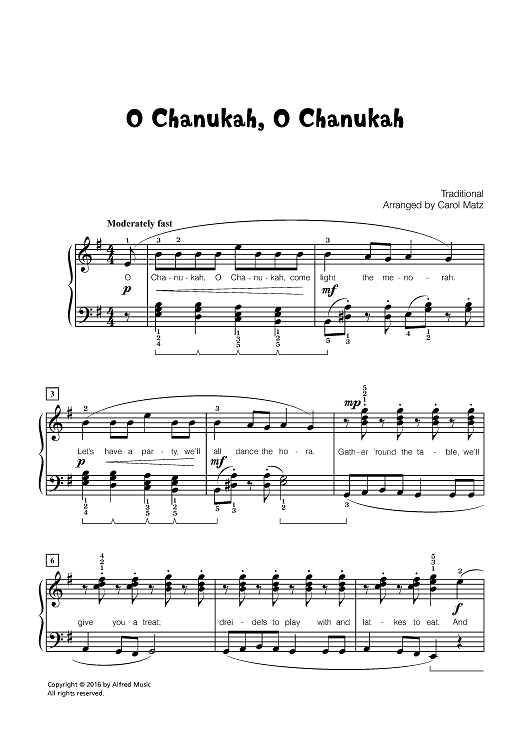 Digital Sheet Music for O Chanukah, Oh Chanukah by Carol Matz, Traditional scored for Piano; id:461801