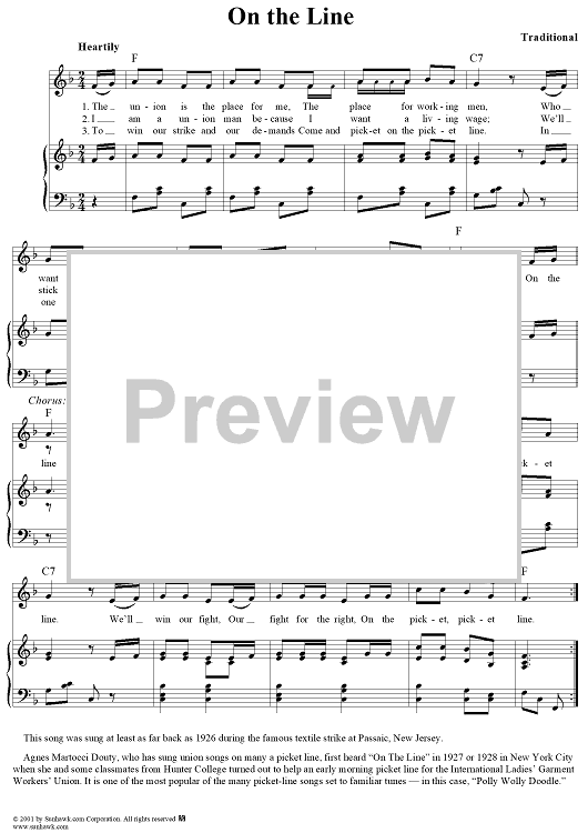 Digital Sheet Music for On the Line by Traditional scored for Piano/Vocal/Chords; id:261104