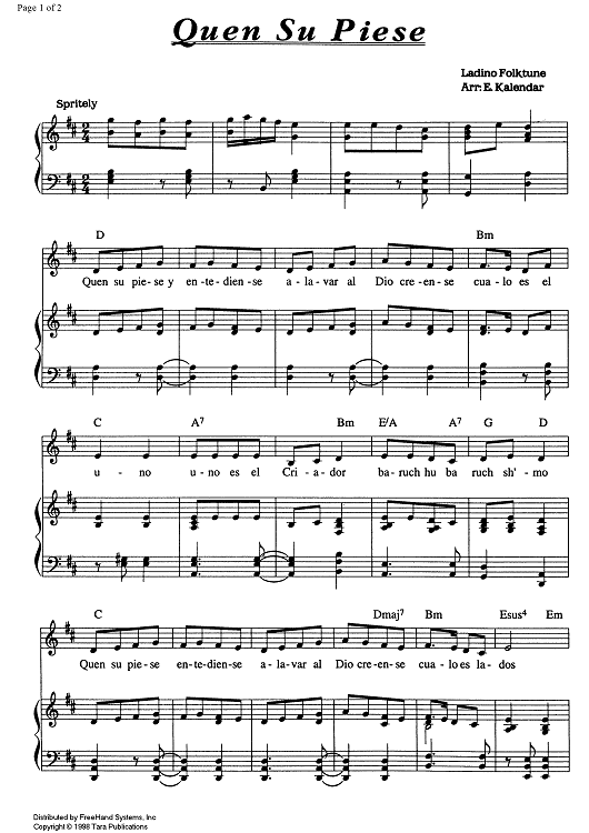 Digital Sheet Music for Quen Su Piese by Edward Kalendar, Traditional scored for Voice/Piano; id:343801