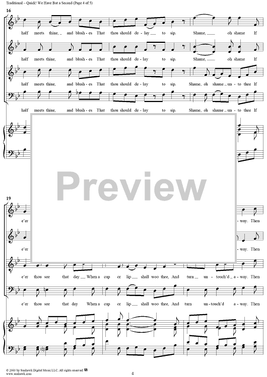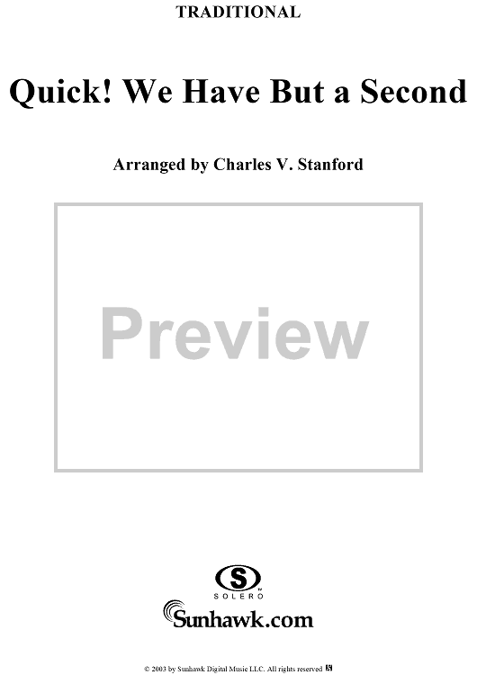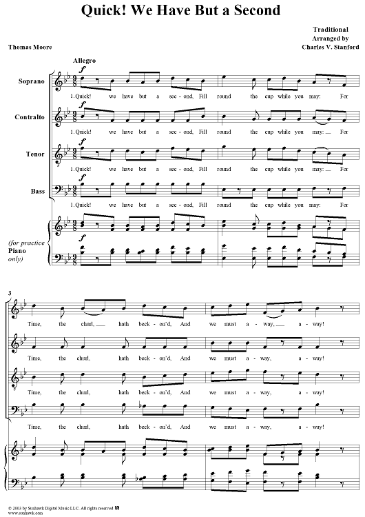 Digital Sheet Music for Quick! We Have But a Second by Thomas Moore, Charles Villiers Stanford, Traditional scored for Four-part Mixed Chorus; id:261508