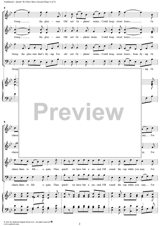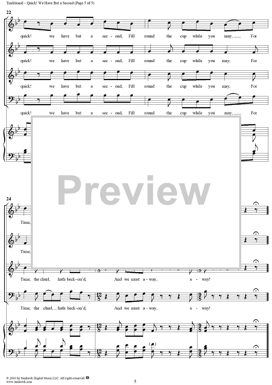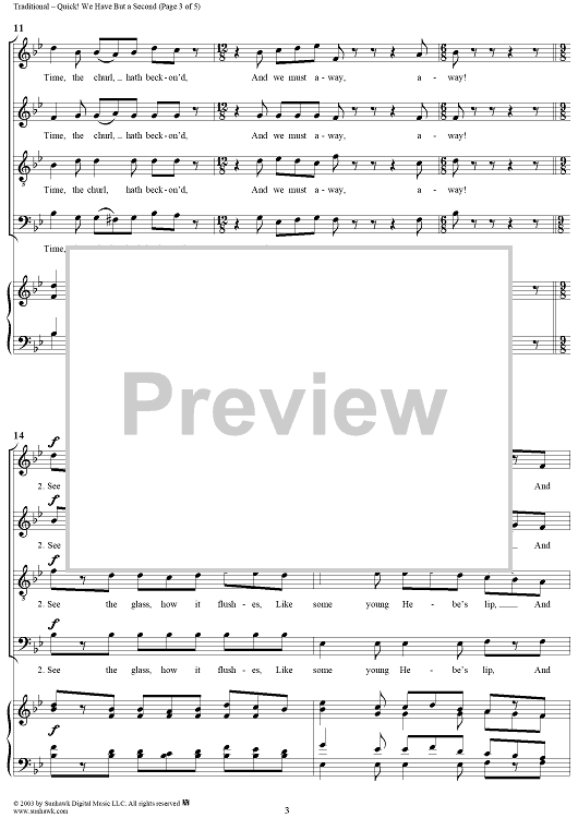 "Quick! We Have But a Second" Sheet Music by Traditional