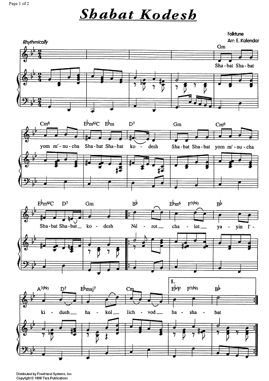 Digital Sheet Music for Shabat Kodesh by , Edward Kalendar, Traditional scored for Voice/Piano; id:343807