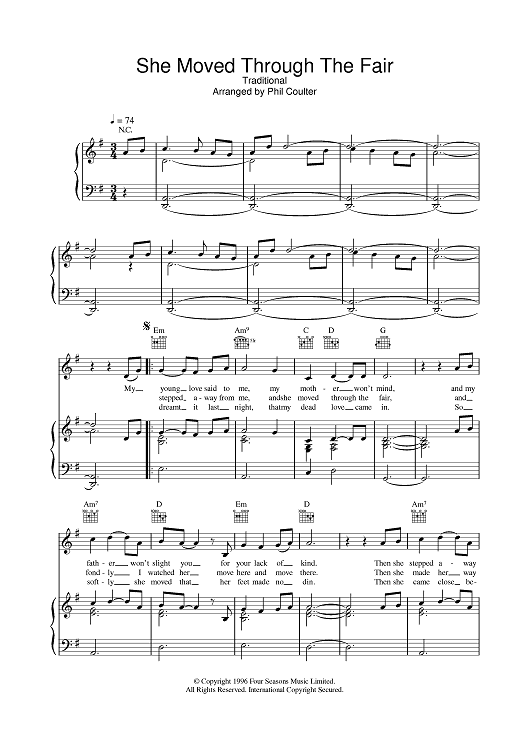 Digital Sheet Music for She Moved Through The Fair by Traditional, Boyzone, Phil Coulter scored for Piano/Vocal/Chords; id:379132