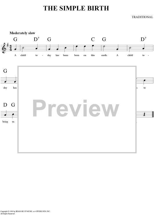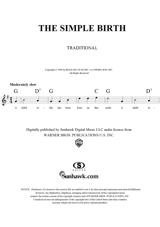 "Simple Birth, The" Sheet Music by Traditional