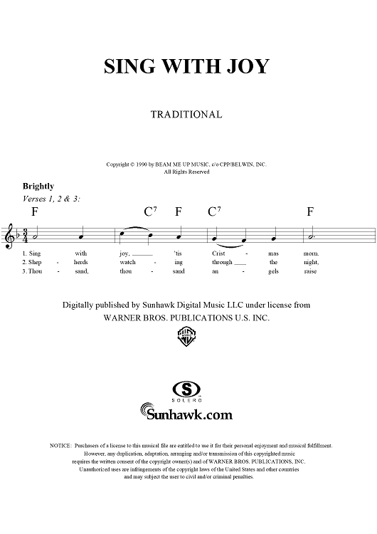 Digital Sheet Music for Sing With Joy by Traditional scored for Lead Sheet; id:262165