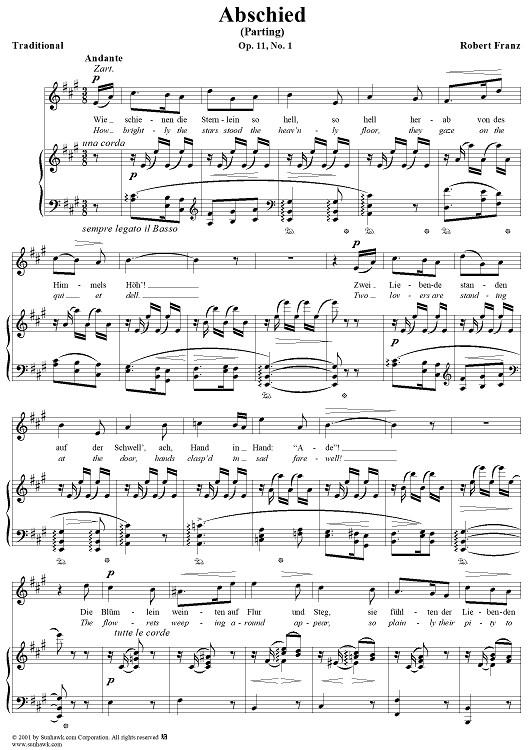 Digital Sheet Music for Six Lieder, op. 11, no. 1: Parting (Abschied) by Robert Franz, Traditional scored for Voice/Piano; id:269132