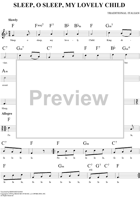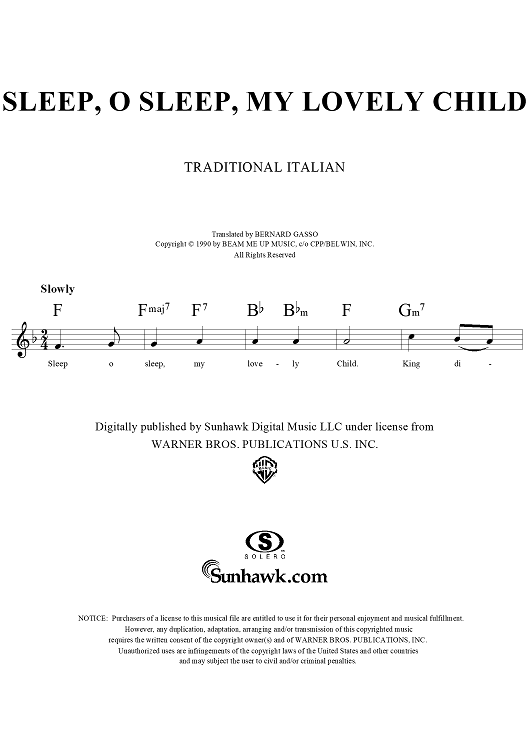"Sleep, O Sleep, My Lovely Child" Sheet Music by Traditional