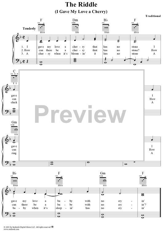 Digital Sheet Music for The Riddle by Traditional scored for Piano/Vocal/Chords; id:261638