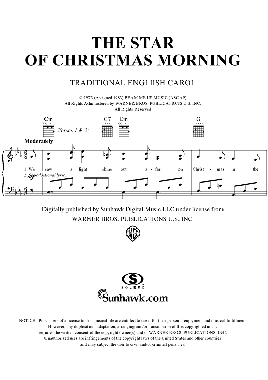 Digital Sheet Music for The Star of Christmas Morning by Traditional scored for Piano/Vocal/Chords; id:283968