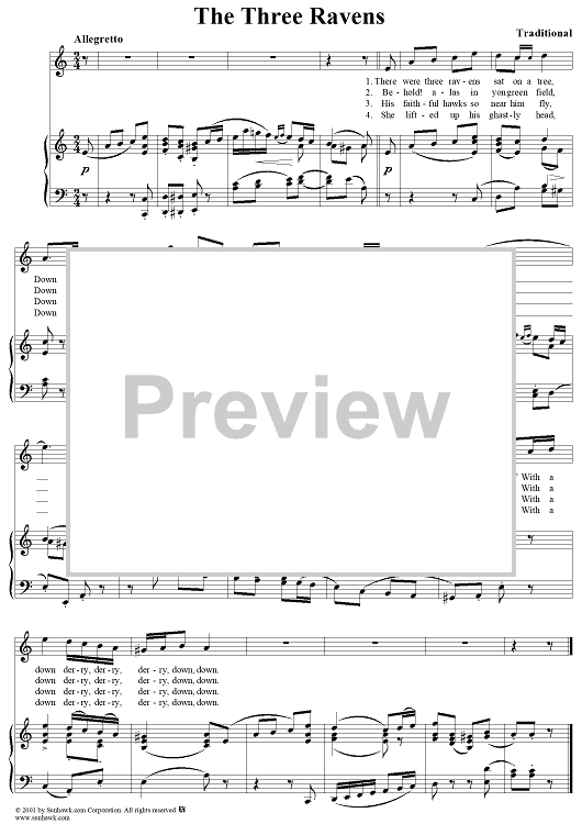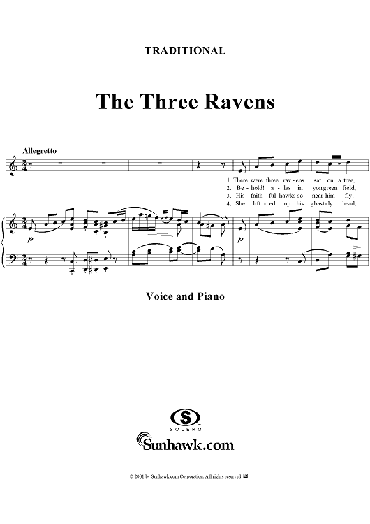 Digital Sheet Music for The Three Ravens by Traditional scored for Voice/Piano; id:259658