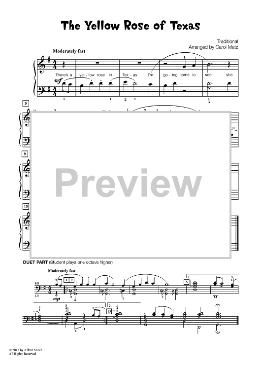 Digital Sheet Music for The Yellow Rose Of Texas by Carol Matz, Traditional scored for Piano; id:451532