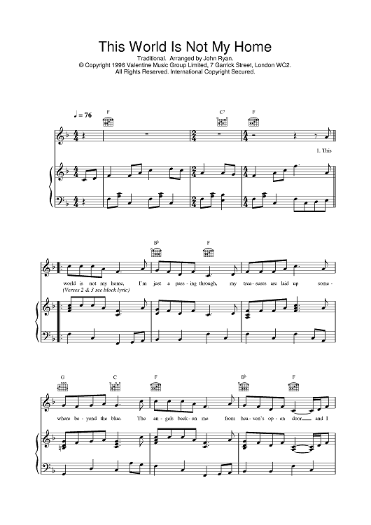 Digital Sheet Music for This World Is Not My Home by Traditional, Daniel O'Donnell, John Ryan scored for Piano/Vocal/Chords; id:378665