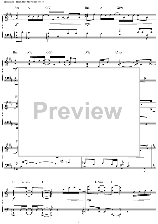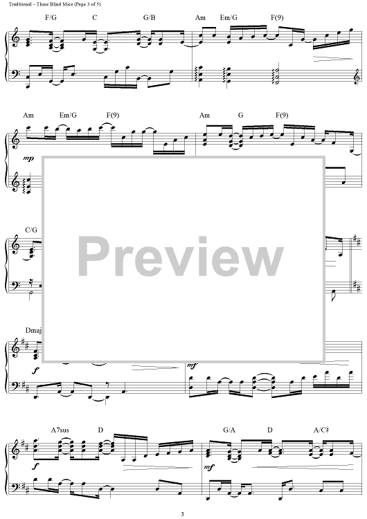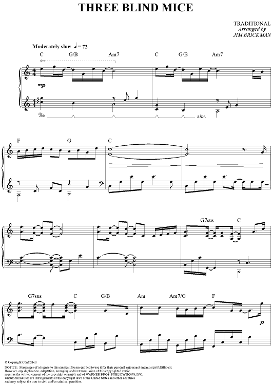 Digital Sheet Music for Three Blind Mice by Jim Brickman, Traditional scored for Piano Solo; id:260558