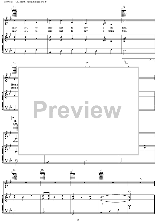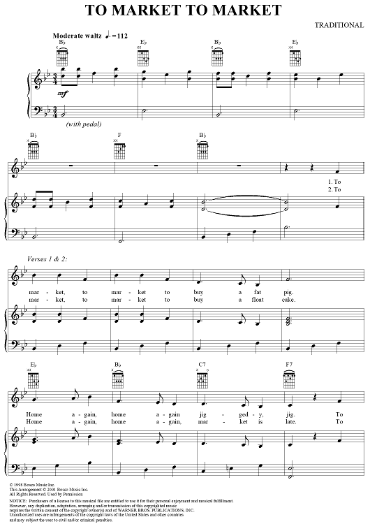 Digital Sheet Music for To Market To Market by Traditional scored for Piano/Vocal/Chords; id:289207