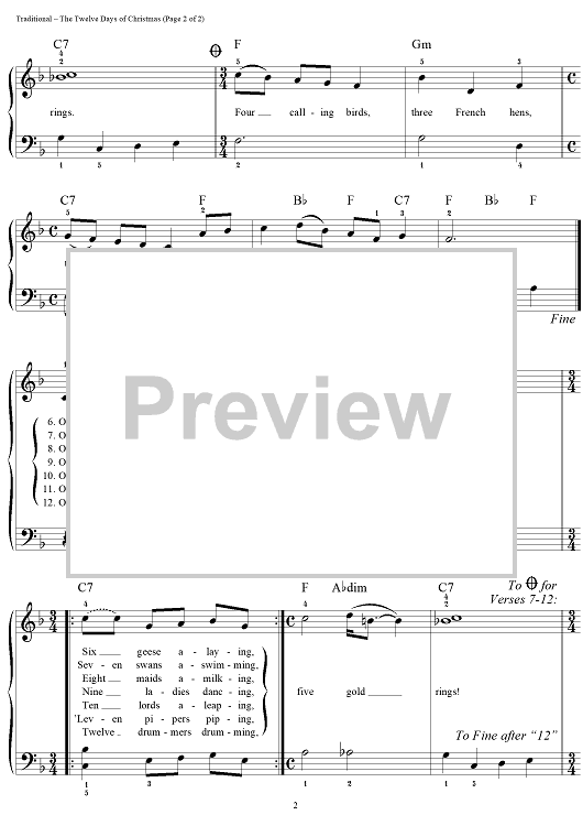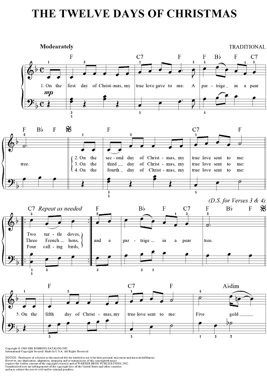 "Twelve Days Of Christmas, The" Sheet Music by Traditional