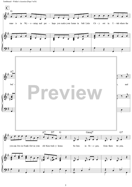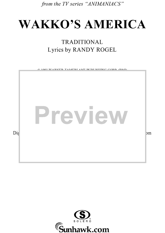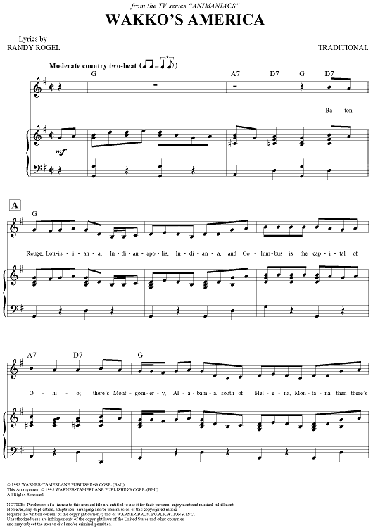 Digital Sheet Music for Wakko's America by Randy Rogel, Traditional scored for Piano/Vocal/Chords; id:261966